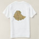 Un titre et un slogan modifiables accompagnent le motif jaune dans un cercle bleu sur des bandes vertes, jaunes et rouges du drapeau éthiopien sur le devant de ce t-shirt. L'arrière affiche une carte détaillée de l'Éthiopie.