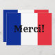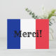 Merci, ou Merci !, en français contre les couleurs du drapeau français. Vous pouvez modifier le style, la taille et la couleur du texte. Si vous ajoutez des informations à l'arrière de cet invitation, vous pouvez supprimer l'image à l'arrière si vous voulez un arrière - plan couleur solide.