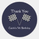 Drapeaux à damier de course automobile Autocollants pour fête d'anniversaire. Ajoutez votre propre texte personnalisé ou laissez vide.