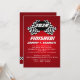 Terminé, fini, gradué ! à damiers drapeaux invitation en rouge à thème de course pour votre lycée qui a atteint la ligne d'arrivée!