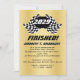 Terminé, fini, gradué ! à damiers drapeaux invitation à thème de course en or, noir et blanc pour votre lycée qui a atteint la ligne d'arrivée!