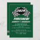 Terminé, fini, gradué ! à damiers drapeaux invitation à thème de course en vert, noir et blanc pour votre lycée qui a atteint la ligne d'arrivée!