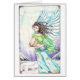 Dreadie Engel, der ihre Trommel beim einem Stern im Winter-nächtlichen Himmel oben betrachten hält.