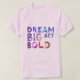 Dieser T - Shirt zeigt die motivierend Botschaft "Dream Big Act Bold" in einem spielerischen Graffiti-Stil. Jedes Wort explodiert mit einer anderen lebendigen Farbe, verbunden durch tropfende Farbe für einen energetischen und künstlerischen Look.