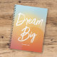 Ce superbe design de carnet / journal présente une calligraphie moderne en brosse en blanc sur un arrière - plan d'horizon d'été flou. Le texte sur le devant dit "Dream Big". Personnalisez ce carnet avec votre propre nom sur le devant. Un carnet parfait pour tous ! Tout le texte est personnalisable et modifiable. Ce carnet est un cadeau sucré pour une rencontre, un ado ou un étudiant !