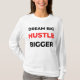 Dream Big Hustle Bigger design. This is a short motivational quote which is great as an appreciation gift idea for Entrepreneurs. Also suitable as a Small Business Owner gift.
