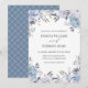 Eine moderne und romantische Hochzeitseinladung, ideal für Feiern im Frühling oder Sommer, oder für Gartenfeiern oder Landschaftsfeiern. Dieses Design zeichnet sich durch eine zarte Anordnung von staubblauen und winkelfarbenen Blume und Weinreben in einem ovalen Muster auf weißem Hintergrund aus. Die Rückseite der Einladung zeichnet sich durch ein zartes Diamantenmuster auf einem abgestimmten, staubblauen Hintergrund aus. Ändern Sie Größe, Stil und Farbe des Schriftartes, indem Sie auf den Button 'Anpassen' klicken. Re - Wort die Hochzeitseinladung zu Ihrem persönlichen Stil. Für Hilfe oder individuelle Anfrage kontaktieren Sie uns bitte über den Shop oder schreiben Sie unter citronelladesign@gmail.com Coordinated to Dream Pink Hochzeitskollektion und Zubehör. Weitere Farben sind verfügbar