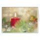 Traumhafte Weihnachten - eine rote Kerze, die leise in der Mitte eines Kranzes brennt, mit Buche. Friedliches Bild in Weihnachtsfarben und -geist. Fügen Sie Ihren eigenen Text hinzu.