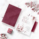 Delikate, blumengeschmückte Arrangements mit kleinen Akzenten aus Blume in sanften, traumhaften Creme-, Taupe- und Rose-Farbtönen mit bordeauxfarbenem Glitzer und einzigartigen Design-Layouts machen diese Kollektion besonders für Herbsthochzeiten zu einem spannenden Erlebnis. Die hier gezeigte Hochzeitseinladung ist mit einem üppigen Blattwerk auf der Vorderseite und einer tiefburgundischen Aquarellstruktur auf der Rückseite ausgestattet. Sehen Sie sich den Sammellink auf dieser Seite an, um alle passenden Elemente in diesem schönen Design zu sehen, oder suchen Sie ID817, um andere Teile und Farboptionen für dieses Set zu sehen.