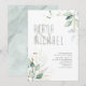 Feine, naturlich inspirierte Vegetationsarrangements inklusive blauem Kaugummi Eukalyptus mit Goldplätschern und Goldblattdrähten sowie einzigartige Design-Layouts machen dieses Set zu einem aufregenden Hochzeitsfest für jedes Jahr. Die hier gezeigte Hochzeitseinladung weist üppige Blattkanten auf der Vorderseite und eine weiche Aquarellstruktur auf der Rückseite auf. Sehen Sie sich den Sammellink auf dieser Seite an, um alle passenden Elemente in diesem schönen Design zu sehen, oder suchen Sie ID817, um andere Teile und Farboptionen für dieses Set zu sehen.