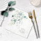 Feine, naturlich inspirierte Vegetationsarrangements inklusive blauem Kaugummi Eukalyptus mit Goldplätschern und Goldblattdrähten sowie einzigartige Design-Layouts machen dieses Set zu einem aufregenden Hochzeitsfest für jedes Jahr. Die hier gezeigte Serviette aus Hochzeitspapier ist mit einer Ecke aus üppigem Blattwerk versehen, die die Namen der Braut und des Bräutigams sowie das Hochzeitsdatum umgibt. Sehen Sie sich den Sammellink auf dieser Seite an, um alle passenden Elemente in diesem schönen Design zu sehen, oder suchen Sie ID817, um andere Teile und Farboptionen für dieses Set zu sehen.