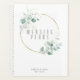 Des aménagements de verdure inspirés de la nature, comme des eucalyptus à gomme bleue avec des éclaboussures de feuilles d'or et d'or, ainsi que des aménagements de design uniques en font un ensemble mariage passionnant pour n'importe quelle période de l'année. La wedding planner présente un demi-cadre circulaire doré bordé de verdure à l'avant et une bordure de bouquet à l'arrière. Visualisez le lien de collection sur cette page pour voir tous les éléments correspondants dans cette belle conception ou recherchez ID817 pour voir d'autres pièces et choix de couleurs pour cet ensemble.