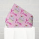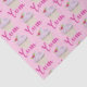 Gewebepapier, entworfen mit einer Illustration eines leckeren Kuchens mit rosa Wirbel und einer Beere mit Blätter, die im Zuckerguss eingebettet sind. "Yum" geschrieben in heißen Rosa mit einem extravaganten trendigen Schriftart. Set auf einem weichen rosa Hintergrund.
