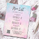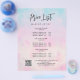 Whimsikaler und verträumter Flyer in Pastellfarben von lila pinkfarben gelb und türkis mit einem Kalligrafieschrift.