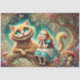 This dreamy design captures Alice and the Cheshire Cat tucked among enchanted branches in a watercolor world of magic mushrooms and glowing skies. The gentle composition feels both surreal and inviting, perfect for layered crafts or handmade décor. Ideal for fantasy lovers who enjoy soft colors and imaginative charm. The scene invites curiosity and creativity with a quiet, magical energy. A lovely way to add a fairytale feeling to any project. Explore more whimsical fantasy designs in my Alice In Wonderland tissue paper collection!