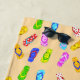 Dieses wunderschöne Badetuch weist ein bezauberndes Muster drehend Flop-Sandalen in verschiedenen Farben und Mustern auf.