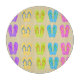 Fügen Sie Art Ihrer Küche hinzu und Unterhaltungsbereiche mit diesem drehen das runde Reinfall-Glasschneiden-Brett (12") das einen sandigen Hintergrund kennzeichnet um, bunt umdrehen Reinfälle in Lila, in Gelbem, in Blauem, in rosa und in Grünem mit orange Blumen. Vervollkommnen Sie für Zuhause, Büro oder Strandhaus. Macht auch ein wunderbares Housewarminggeschenk! Viele zusammenpassenden Produkte sind auch in unserem Geschäft verfügbar. Gemacht mit Hand-gepresstem ausgeglichenem Glas, sind diese ins Auge fallenden Schneidebretter für prepping und das Dienen groß.