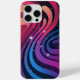 Eine lebendige Vektortapete mit wirbelnden, gekrümmten Linien in einem farbigen Regenbogen. Der Hintergrund verblasst von Rosa zu lila zu Blau, wodurch eine faszinierende Tiefe entsteht. Die Linien variieren in Größe und Dicke, was das dynamische und energetische Design noch verstärkt.