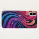 Eine lebendige Vektortapete mit wirbelnden, gekrümmten Linien in einem farbigen Regenbogen. Der Hintergrund verblasst von Rosa zu lila zu Blau, wodurch eine faszinierende Tiefe entsteht. Die Linien variieren in Größe und Dicke, was das dynamische und energetische Design noch verstärkt.