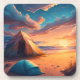 Friedliche Holzkunst, Zelte, Hütten und Lagerfeuer in warmen Vintagen Farben wie braun und blau.
