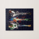 Drei farbige Gitarren auf dunkelblauem Hintergrund