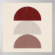 Ein modernes abstraktes Kunstwerk im minimalistischen Stil mit drei harmonisch farbigen Crescents mit einer subtilen Pinselstrichstruktur. Mit einem cremefarbenen Hintergrund.