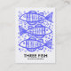 Eine moderne Visitenkarte mit einem attraktiven, Vorlage drei fischen Motiv. Passend für eine Vielzahl von Geschäften. Bereiten Sie vor besonders angefertigt zu werden. Die Firmensonderkommandos sind- auf der Front mit Namen und treten mit Details über die Rückseite in Verbindung.