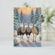 Genießen Sie den Urlaubssinn mit dieser bezaubernden Weihnachtskarte mit drei freundlichen Straußen, die spielerisch auf einem schneebedeckten Weg wandern. In einer gemütlichen Winterlandschaft verzieren diese lebendigen Vögel ihren festlichen Charme, umgeben von einer üppigen, grünen Kulisse, die sich wunderbar mit dem weichen, weißen Schnee auf dem Boden kontrastiert. Freude und Gelassenheit, diese wunderbare Szene fängt das Wesen der Wärme und Fröhlichkeit während der schönsten Zeit des Jahres ein und erinnert uns daran, dass der Zauber der Weihnachtszeit in den unerwarteten Orten zu finden ist!
