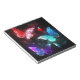 Drei glühende Schmetterlinge im Hintergrund Notizblock