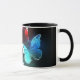Drei glühende Schmetterlinge im Hintergrund Tasse