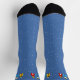 Drei Könige in bunten Kleidung mit Geschenken und kleinen Schneeflocken auf blauen Socken. Frohe Weihnachten!