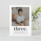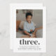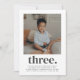 Eine moderne 3. Geburtstagseinladung mit Ihrem eigenen Foto und dem Wort "drei" darunter.