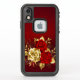 Die Komposition von zwei kunstvoll bemalten rote Rosen und einer goldenen Rose, mit Gold, Juwel Blätter auf texturierten Hintergrund verziert.