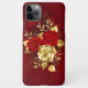 Die Komposition von zwei kunstvoll bemalten rote Rosen und einer goldenen Rose, mit Gold, Juwel Blätter auf texturierten Hintergrund verziert.
