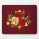 Die Komposition von zwei kunstvoll bemalten rote Rosen und einer goldenen Rose, mit Gold, Juwel Blätter auf texturierten Hintergrund verziert.