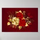 Die Komposition von zwei kunstvoll bemalten rote Rosen und einer goldenen Rose, mit Gold, Juwel Blätter auf texturierten Hintergrund verziert.