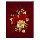 Die Komposition von zwei kunstvoll bemalten rote Rosen und einer goldenen Rose, mit Gold, Juwel Blätter auf texturierten Hintergrund verziert.