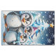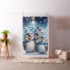 Drei bezaubernde Pinguine stehen in festlichen Winterhüten und farbenfrohen Schals. Ihre großen, runden Augen strahlen vor Freude, während ihre flauschigen weißen Bäuche mit dem hellblauen Weihnachtsbaum kontrastieren, der mit funkelnden Lichtern geschmückt ist. Die Pinguine lächeln glücklich und scheinen bereit, den Zauber der Feriensaison zu feiern. Rund um sie tanzen zarte Schneeflocken durch die Luft, während funkelnde Sterne am Himmel leuchten und eine warme, festliche Atmosphäre schaffen. Dieses Design vereint den Geist der Weihnachten - voller Freude, Freundschaft und Winterwundern!