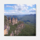 Drei Schwestern, Blue Mountains, NSW, Australien. Vollständig anpassbar. Die Drei Schwestern sind eine Felsformation in den Blauen Bergen von New South Wales, Australien. Sie sind nah zur Stadt Katoomba und gehören zu den bekanntesten Sehenswürdigkeiten der Blauen Berge, die über dem Jamison Valley ragen. Sie heißen Meehni (922 m), Wimlah (918 m) und Gunnedoo (906 m). Die Schwestern wurden durch Erosion geformt. Der weiche Sandstein des Blauen Gebirges wird mit der Zeit durch Wind, Regen und Flüsse leicht erodiert, und die Felsen rund um das Jamison Valley werden langsam aufgebrochen. Formationen wie die Drei Schwestern entstehen, wenn Wasser in kleine Risse im Felsen sickert und sie im Laufe der Zeit allmählich zu großen Abenteuern ausweitet. Letztlich werden die Schwestern komplett ausgehöhlt.