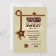 Sagen Sie ihnen, die sie an Ihrem Party mit diesem Spaß "GEWOLLT" werden, Western-themenorientiert, Einladung. Der goldene Hintergrund hat ein geschlungenes Braun- und Rostband und drei Sterne. Die Karte ist einfach, mit Ihrer Benennung, Schriftart, Schriftartfarbe und Wahl von sechs Papiersorten besonders anzufertigen.