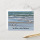 Eine Aquarellfarbe von drei gemeinsamen Seeschwalben am Strand, mit Sand und Wellen im Hintergrund, verkünden, dass Sie eine neue Adresse auf dieser Postkarte haben. Die Rückseite wird leer verlassen, damit Sie Ihre Daten anpassen können.