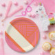 Dreieck Streifen in Rosa, Orange und Creme Pappteller