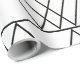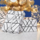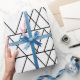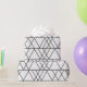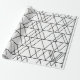 Dieses Verpackungspapier hat ein modernes Design von weißen Dreiecken, die horizontal mit schwarzen Linien ausgeführt werden.