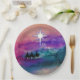 Schöne Aquarellszene mit der Silhouette der Drei Könige, die zum neuen geborenen Jesus reisten. Religiöse Weihnachtskarte, die die Geburt Christi verkündet.
