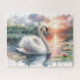 Schwan, der auf der Oberfläche eines Sees im Stil einer Aquarellmalerei treibt.