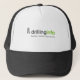 Hut mit Logo auf weißem Hintergrund mit schwarzen Details.