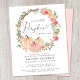 Eine elegante und hübsche, preisgünstige Anfahrt mit der Baby Girl Dusche mit "ein süßer Kürbis ist auf dem Weg", geschrieben in einer Mischung aus moderner, weicher grauer Typografie und einem Drehbuch mit Herzschlag, einem Kranz aus Pastellrosa und Korallenkürbis und floralen Wasserfarben. Einfach den Namen der Mutter und den Antrieb durch Duschdetails in schlichter grauer Typografie personalisieren.