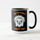 La tasse d'Halloween parfaitement puny pour les mathématiciens, les professeurs de maths, les programmeurs et les ingénieurs ! Un fantôme généré par l'IA, avec des cheveux blancs démêlés et de la moustache, semble surpris de découvrir que vous pensez que "Boo-lean Algebra is Scary Stuff." Reverse affiche un design identique. Design © W.H. Sim. Voir plus sur zazzle.com/word2art