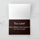 Quand vous êtes tous de bons amis qui aiment le sarcasme, ou des remarques souriantes, et même s'attendre à les uns des autres, cette carte fiançailles correspond à votre personnalité. Dehors de la carte : 'Ne dites à personne que vous vous mariez', A l'intérieur de la carte : 'Trop tard, nous sommes tous impatients de l'alcool gratuit'. Sur le dos de la carte il y a une remarque finale inattendue.