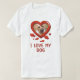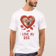 Un drôle de t-shirt de propriétaire d'animal de compagnie avec l'adage "I love my dog", avec une photo de votre chien en forme de coeur d'amour, et une diffusion de petits coeurs rouges.